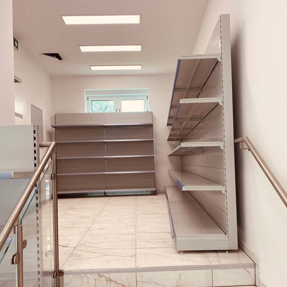 Az üzletberendezés alapvető eleme a polcrendszer. A fali egységeknek legalább kettő funkciója van, egyrészt kiemelik a terméket, másrészt tárolják azt. A mutatós, új fémpolcokkal berendezett eladótérbe szívesen lépnek be a vásárlók. A rendezett, átlátható üzletben könnyebben el lehet igazodni, a vásárlók egy ilyen helyen több időt is eltöltenek, ami nagyobb profitot is jelenthet az üzlet számára.